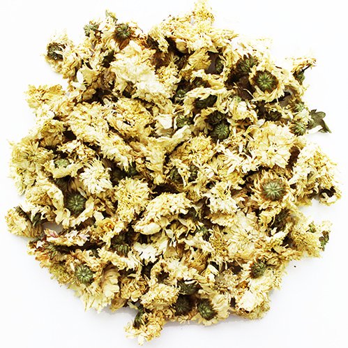 Chrysanthemum is believed to lower blood pressure, reduce fever, cleanse the liver, aid digestion, and is also believed to be anti-aging and anti-inflammatory.