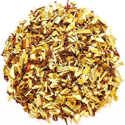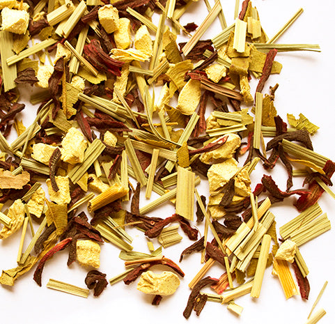 Refreshingly fruity, tangy, and spicy blend of organic ginger, hibiscus, and lemongrass. Delicious served hot or chilled.