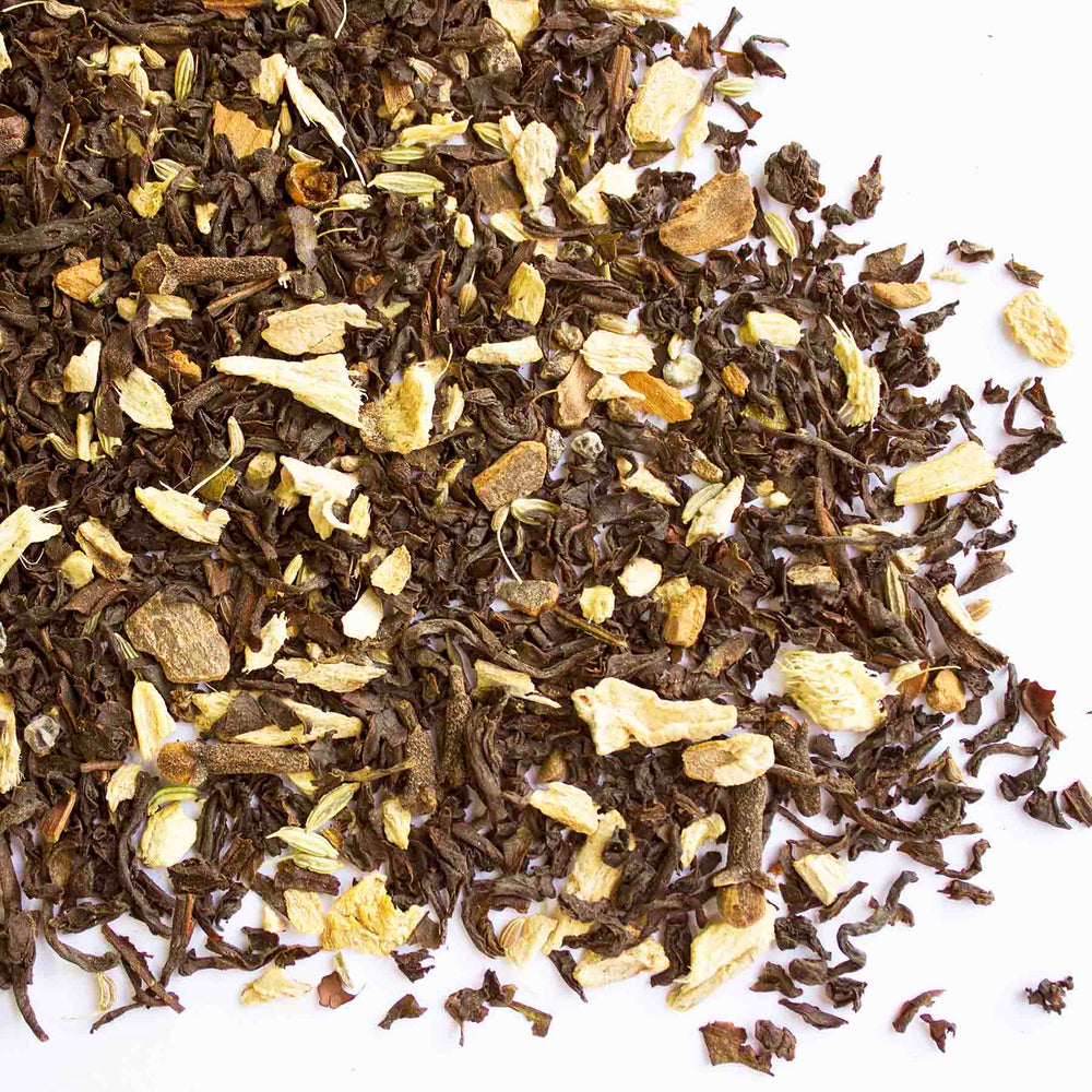 Black tea (Camellia sinensis)*, ginger*, cinnamon*, cardamom*, aniseed*, cloves*, fennel seeds*, black pepper*, vanilla* (*all organic).