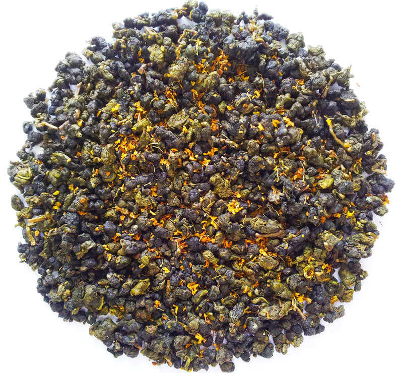 Premium Formosa oolong tea delicately scented with fresh, fragrant Osmanthus flowers.