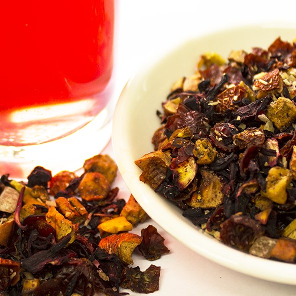 Pineapple, coconut, hibiscus, and apple pieces make the perfect Pina Colada iced tea to lounge by the pool with on a hot summer day. Also great served steaming hot.
