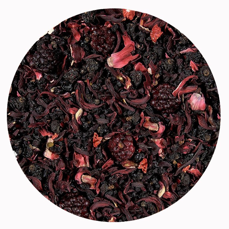 Elderberries, hibiscus, blackcurrants, blackberries, raspberries, strawberry pieces, flavouring.