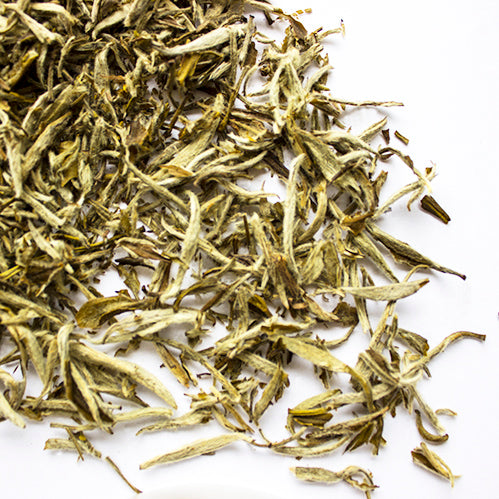 Silver Needle white tea of high grade. Makes a light-coloured tea with a silky smooth taste and a subtle sweet character, along with light nutty undertones.