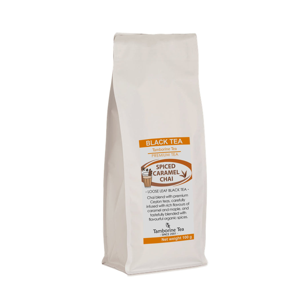 Indulge in the rich blend of black tea infused with the warmth of creamy caramel and the sweetness of maple, complemented by a mix of flavourful and comforting organic spices.