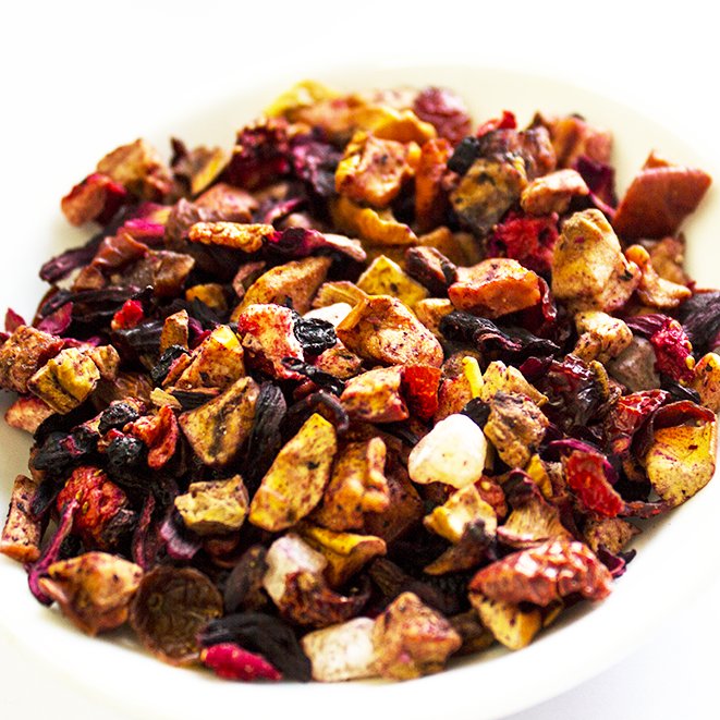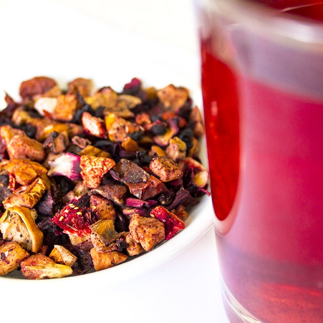 You will feel like you are walking through a Strawberry Patch with this sweet, delicious and enticing aroma wafting through the kitchen. This luscious red and sweet infusion can be served as a warming dessert tea or chilled with a sprig of fresh mint.