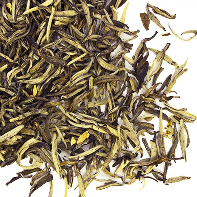 Jasmine scented white silver needle tea (Camellia sinensis).